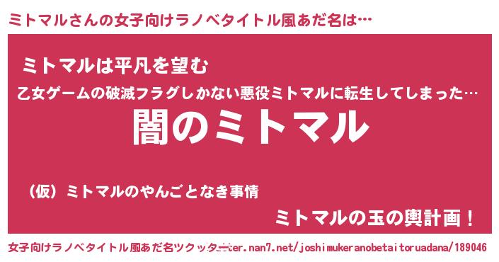 | ヒーロー風カッコイイあだ名 | 『最強戦士ミトマル』『暗黒騎士ミト』 |