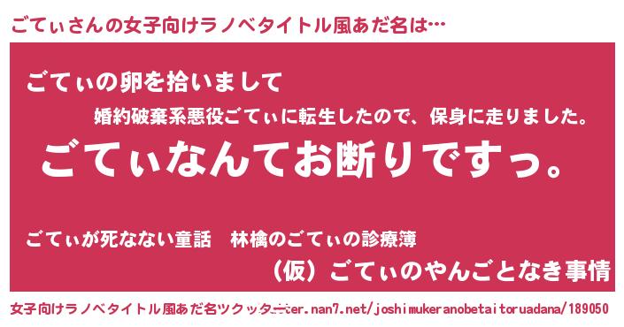 | 男性向けラノベタイトル風あだ名 | 『魔法科高校のごてぃ』『ごてぃの憂鬱』 |