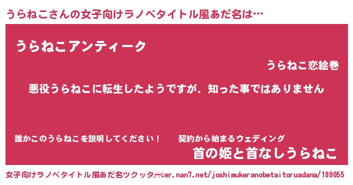 | 男性向けラノベタイトル風あだ名 | 『この素晴らしい世界にうらねこを!』 |