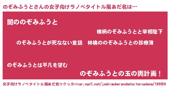| 男性向けラノベタイトル風あだ名 | 『魔弾の王とのぞみふうと』 |