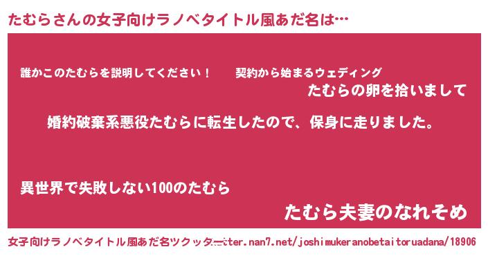 | 胡散臭い通販商品みたいなあだ名 | 『必ず成功するブレスレット…その名も「たむら」』 |