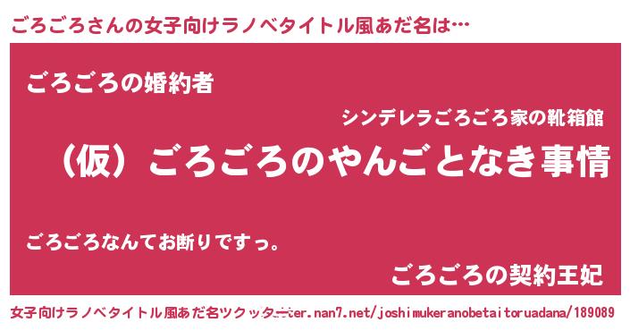 | 男性向けラノベタイトル風あだ名 | 『ごろごろの憂鬱』『緋弾のゴロゴロ』 |