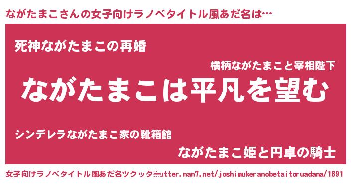 | ヒーロー風カッコイイあだ名 | 『暗黒騎士ナガ』『慈愛の使者ながたまこ』 |