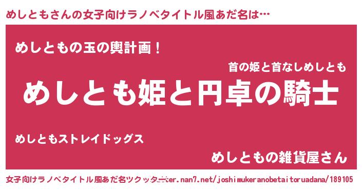 | 男性向けラノベタイトル風あだ名 | 『めしともの憂鬱』 |