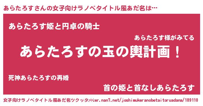 | 胡散臭い通販商品みたいなあだ名 | 『モテモテ間違いなし霊験あらたかなお札…その名も「あらたろす」』 |