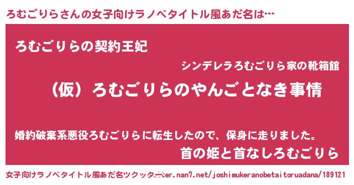 ろむごりらさんの女子向けラノベタイトル風あだ名