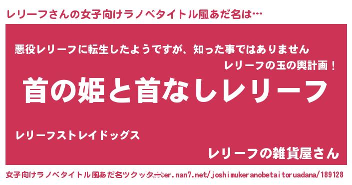 | 意味不明あだ名 | 『住所不定無職レリーフ(68歳)』 |