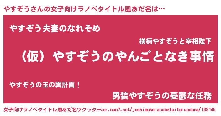 | 意味不明あだ名 | 『ペロリンやすぞう』『永久保存やすぞう』 |
