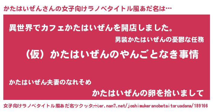 | 男性向けラノベタイトル風あだ名 | 『かたはいぜんの憂鬱』 |