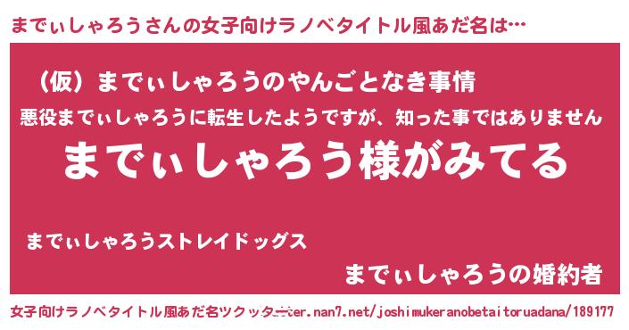 | 萌えアニメ | 主人公(までぃしゃろう)のあだ名『 まで殿』 |