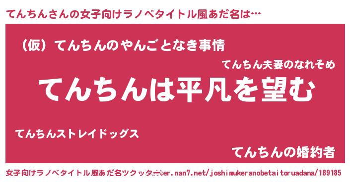 | 男性向けラノベタイトル風あだ名 | 『ダンジョンにてんちんを求めるのは間違っているだろうか』 |