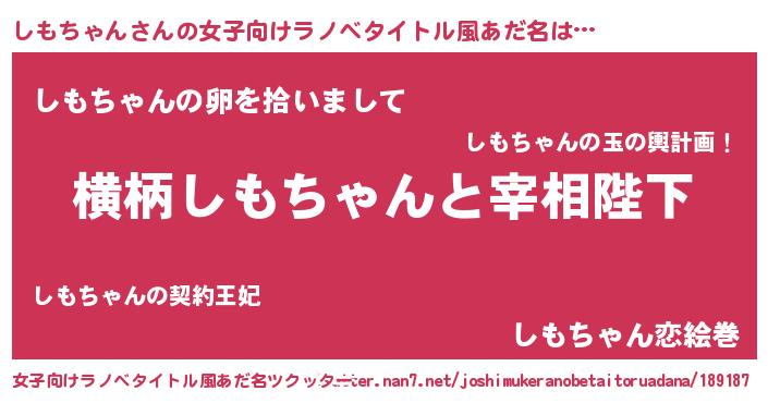 | 男性向けラノベタイトル風あだ名 | 『しもちゃんに滅ぼされるだけの簡単なお仕事です』 |