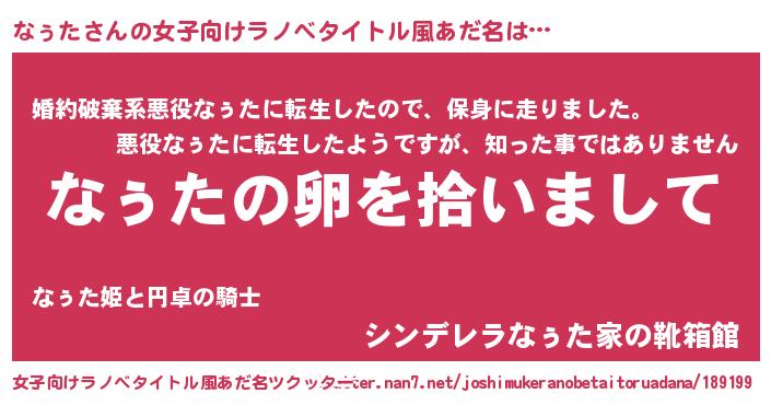 | 男性向けラノベタイトル風あだ名 | 『なぅたの嫁は女の子じゃないと思った?』 |