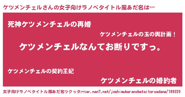 | 男性向けラノベタイトル風あだ名 | 『魔法科高校のケツメンチェル』 |