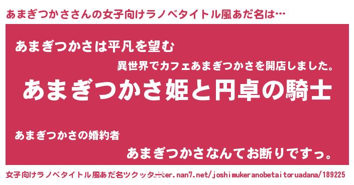 | 男性向けラノベタイトル風あだ名 | 『あまぎつかさの憂鬱』 |