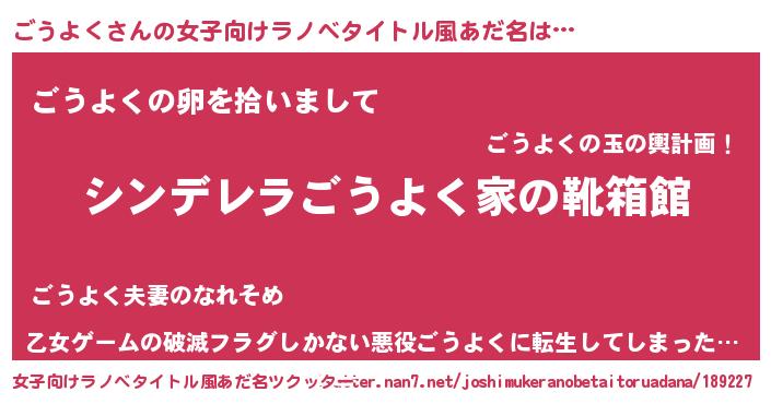 | 胡散臭い通販商品みたいなあだ名 | 『信頼と実績のサプリメント…その名も「ごうよく」』 |