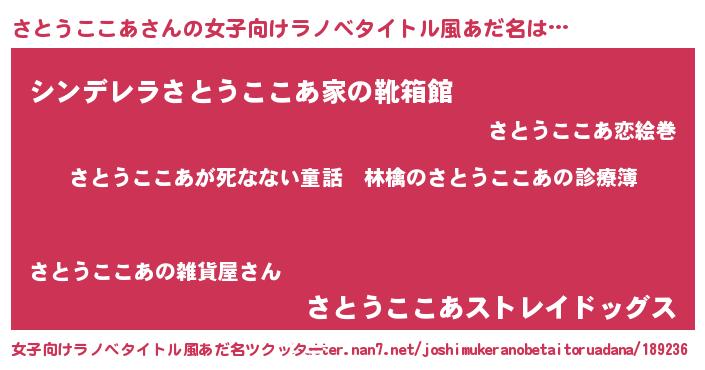 | 意味不明あだ名 | 『住所不定無職さとうここあ(81歳)』 |