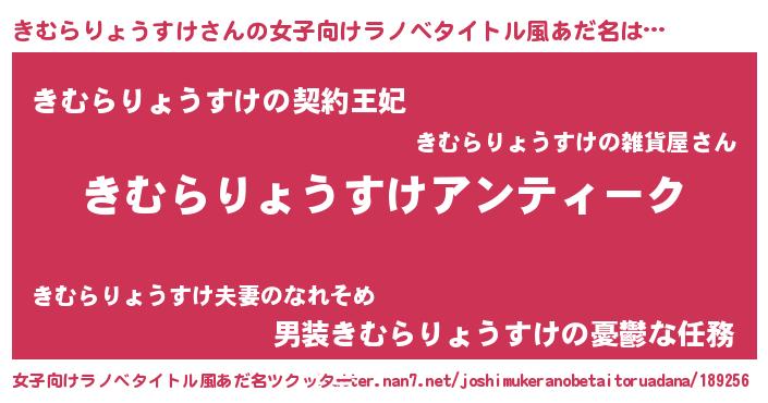 | 男性向けラノベタイトル風あだ名 | 『魔法科高校のきむらりょうすけ』 |