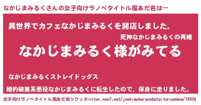| 男性向けラノベタイトル風あだ名 | 『なかじまみるくの嫁は女の子じゃないと思った?』 |