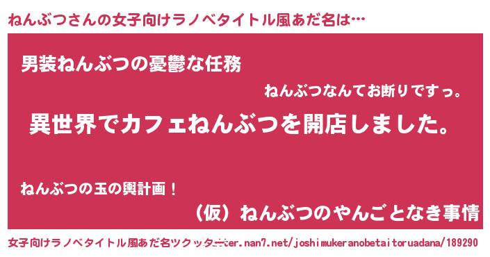 | 胡散臭い通販商品みたいなあだ名 | 『前代未聞の健康食品…その名も「ねんぶつ」』 |