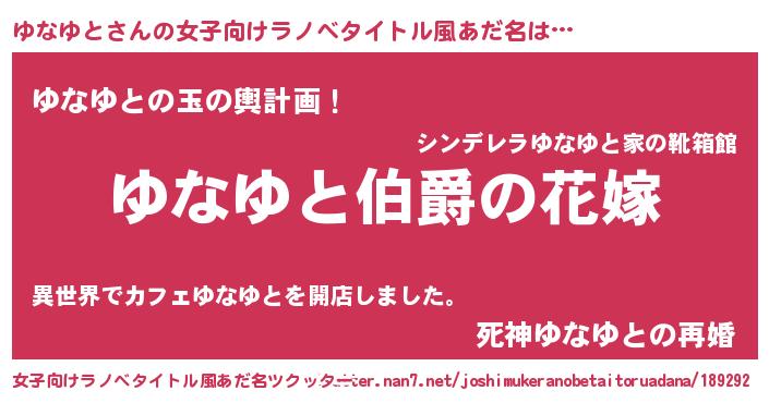 | 男性向けラノベタイトル風あだ名 | 『やはりゆなゆとの青春ラブコメはまちがっている 』 |
