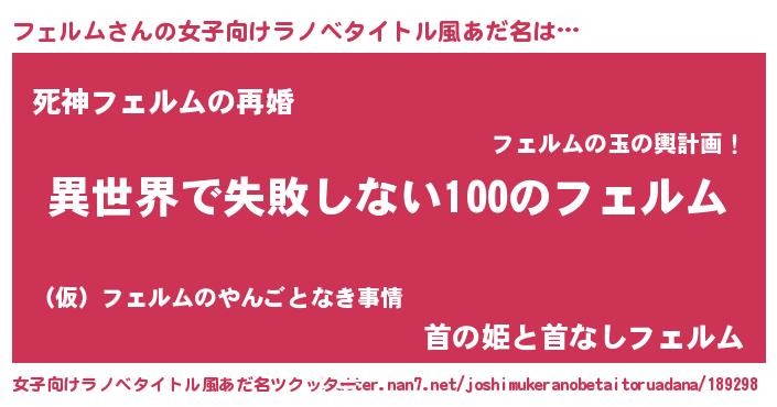 | 男性向けラノベタイトル風あだ名 | 『フェルムという概念が存在しない退屈な世界 』 |