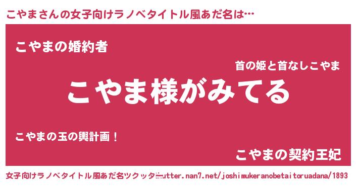 | 男性向けラノベタイトル風あだ名 | 『こやまの嫁は女の子じゃないと思った?』 |