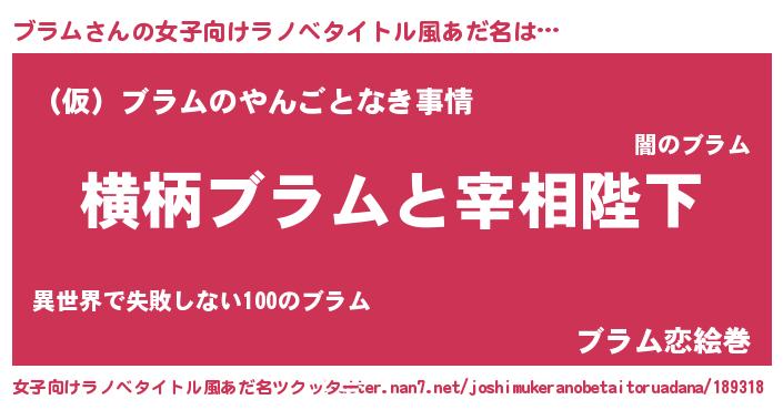 | 男性向けラノベタイトル風あだ名 | 『ブラムに滅ぼされるだけの簡単なお仕事です』 |