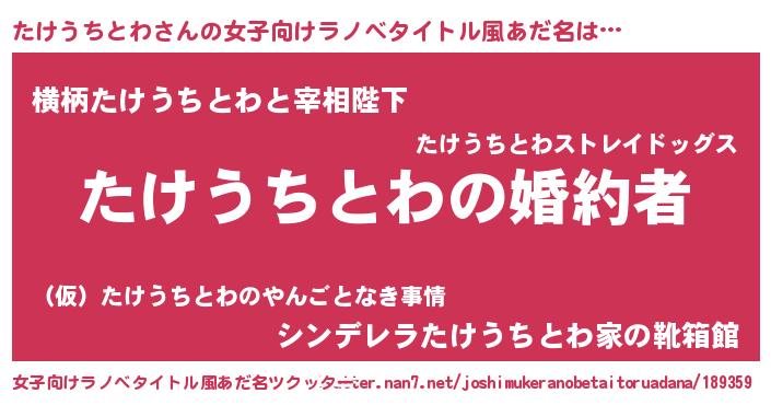 | 肩書あだ名 | 『たけうちとわ大統領』 |