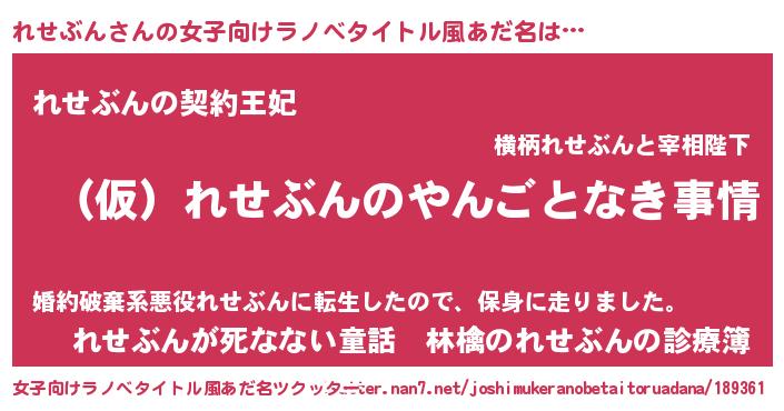 | 胡散臭い通販商品みたいなあだ名 | 『必ず成功する水晶球…その名も「れせぶん」』 |