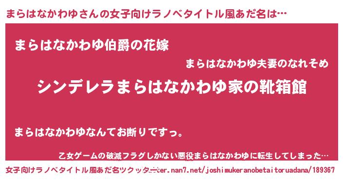 | 男性向けラノベタイトル風あだ名 | 『緋弾のマラハナカワユ』 |