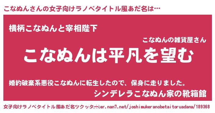| 男性向けラノベタイトル風あだ名 | 『ダンジョンにこなぬんを求めるのは間違っているだろうか』 |