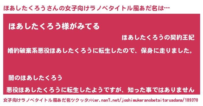 | 男性向けラノベタイトル風あだ名 | 『転生したらほあしたくろうだった件』 |