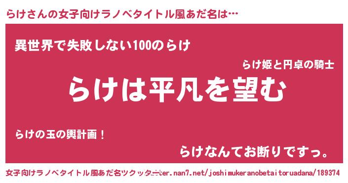 | 胡散臭い通販商品みたいなあだ名 | 『信頼と実績のサプリメント…その名も「らけ」』 |