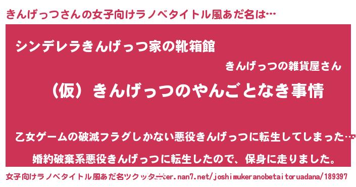 | 男性向けラノベタイトル風あだ名 | 『きんげっつの憂鬱』 |