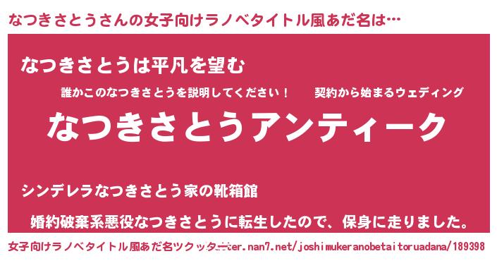 | 欧米人風あだ名 | 『ケンブリッジなつきさとう』 |