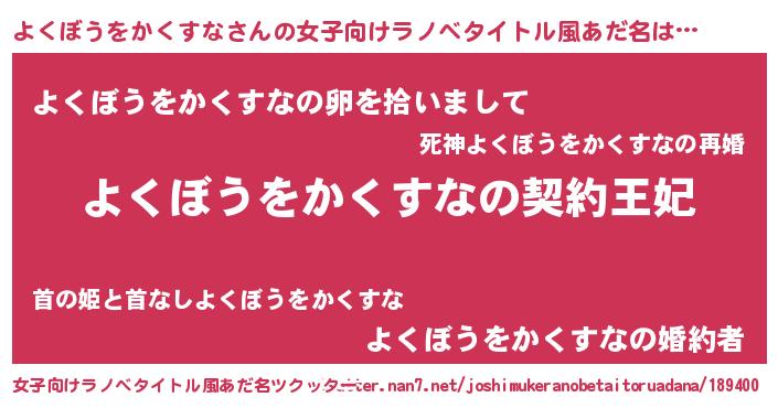 | ヘコむあだ名 | 『よくぼうをかくすな(小並感)』『よく太郎』 |