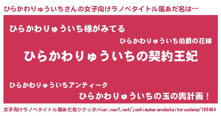 | 男性向けラノベタイトル風あだ名 | 『誰もが恐れるあのひらかわりゅういちが、ぼくの専属メイドになるようです。』 |