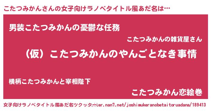 | 胡散臭い通販商品みたいなあだ名 | 『必ず成功する霊験あらたかなお札…その名も「こたつみかん」』 |