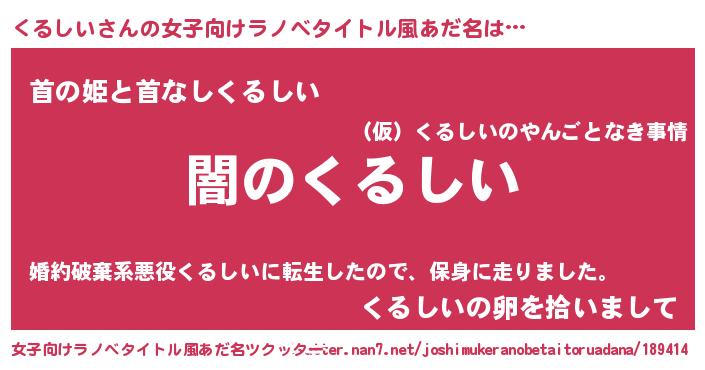 | 男性向けラノベタイトル風あだ名 | 『Re:くるしいから始める異世界生活』 |