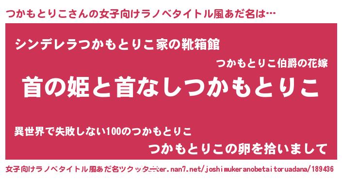 | 男性向けラノベタイトル風あだ名 | 『はたらくつかもとりこさま!』 |
