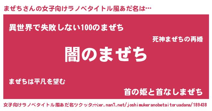 | 男性向けラノベタイトル風あだ名 | 『Re:まぜちから始める異世界生活』 |