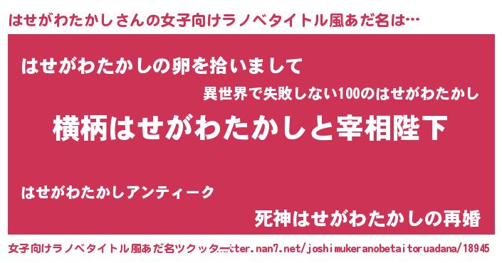 | ヘコむあだ名 | 『はせっぺ』『はせがわたかし(爆)』 |