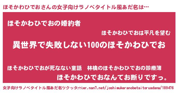 | 男性向けラノベタイトル風あだ名 | 『ほそかわひでおという概念が存在しない退屈な世界 』 |