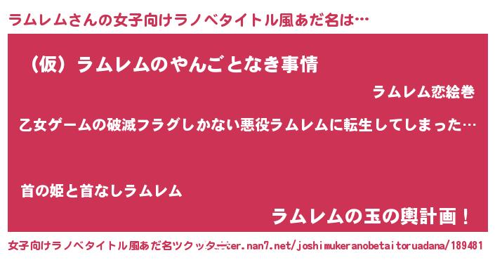 | 恥ずかしいあだ名 | 『プリティーラムレム』『ラムっちょ』 |