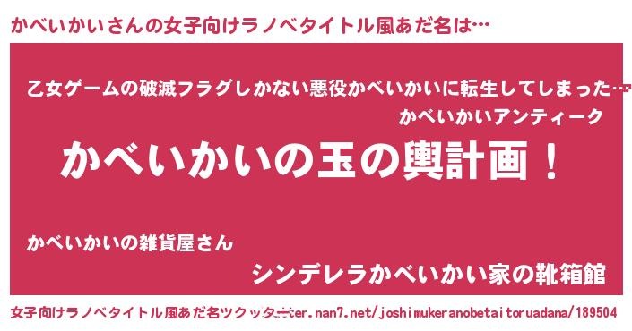 | 男性向けラノベタイトル風あだ名 | 『かべいかい~年齢イコール彼女いない歴の魔法使い~』 |