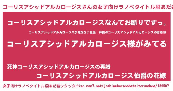 | 意味不明あだ名 | 『とにかく怪しいコーリスアシッドアルカロージス』 |