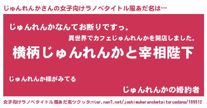 | 男性向けラノベタイトル風あだ名 | 『じゅんれんかに滅ぼされるだけの簡単なお仕事です』 |