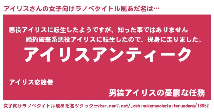 | 胡散臭い通販商品みたいなあだ名 | 『テレビで話題のアガリクス…その名も「アイリス」』 |