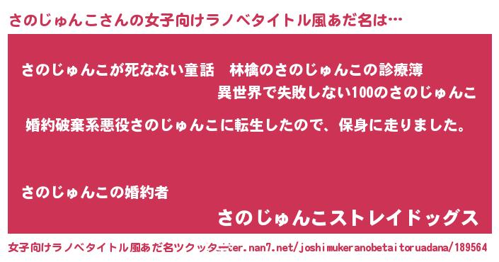 | 男性向けラノベタイトル風あだ名 | 『転生したらさのじゅんこだった件』 |